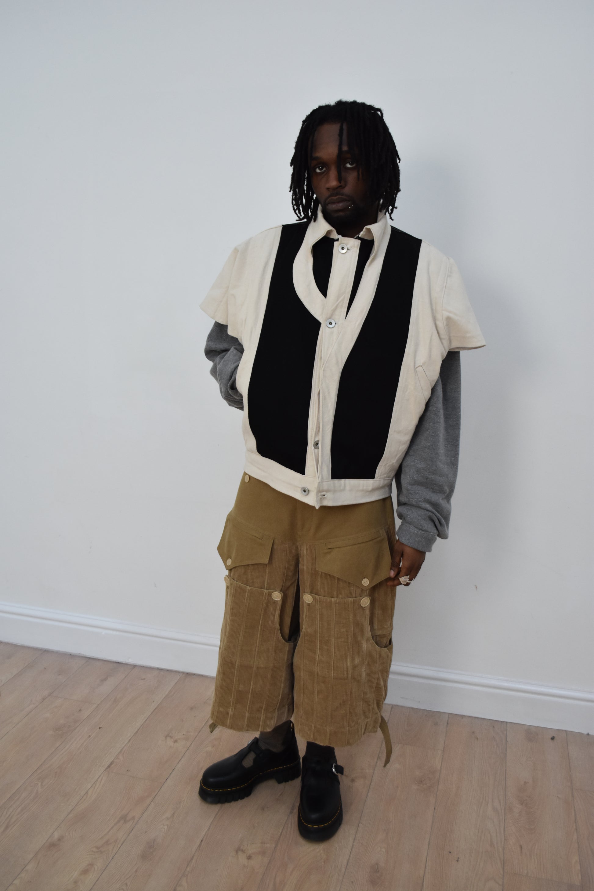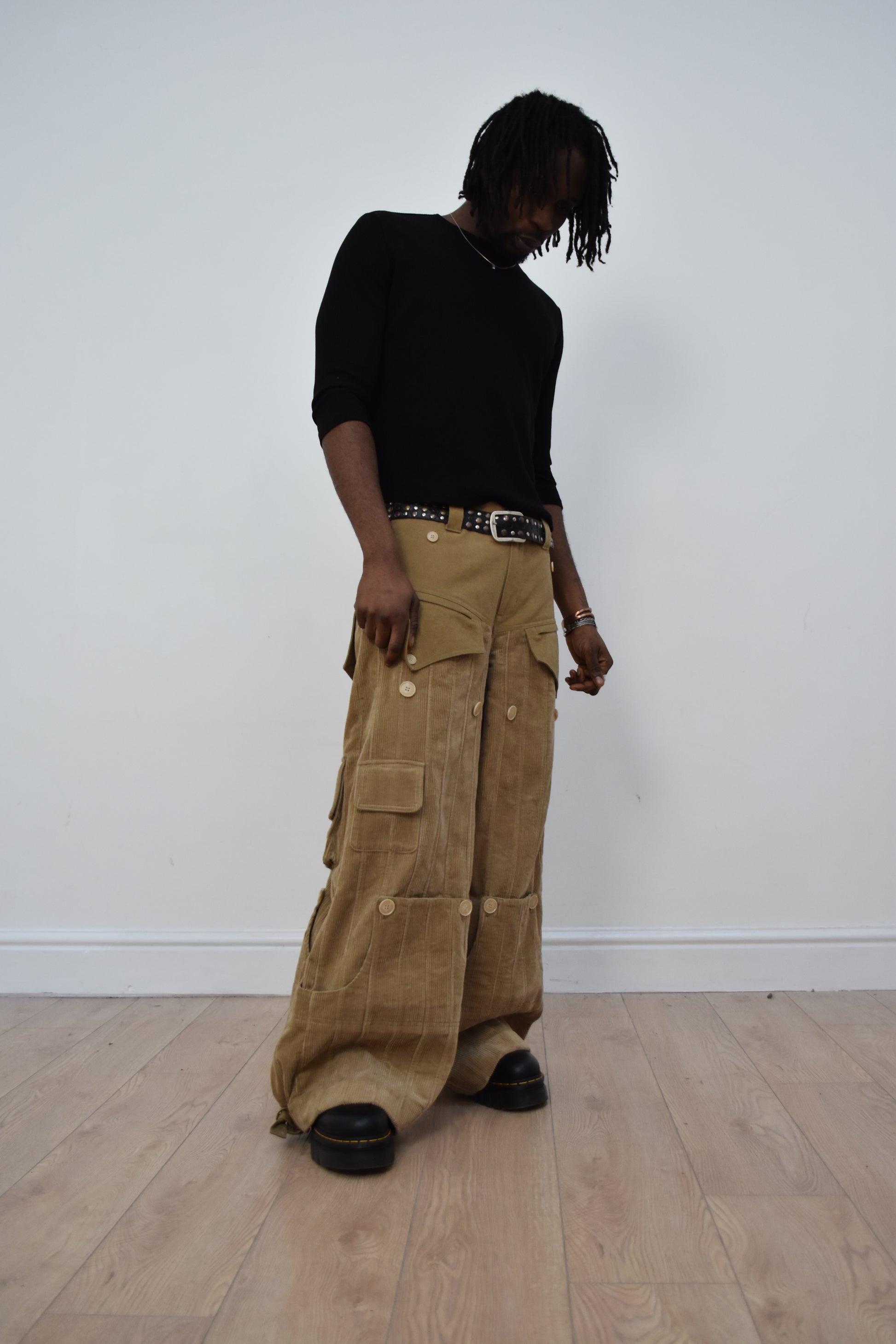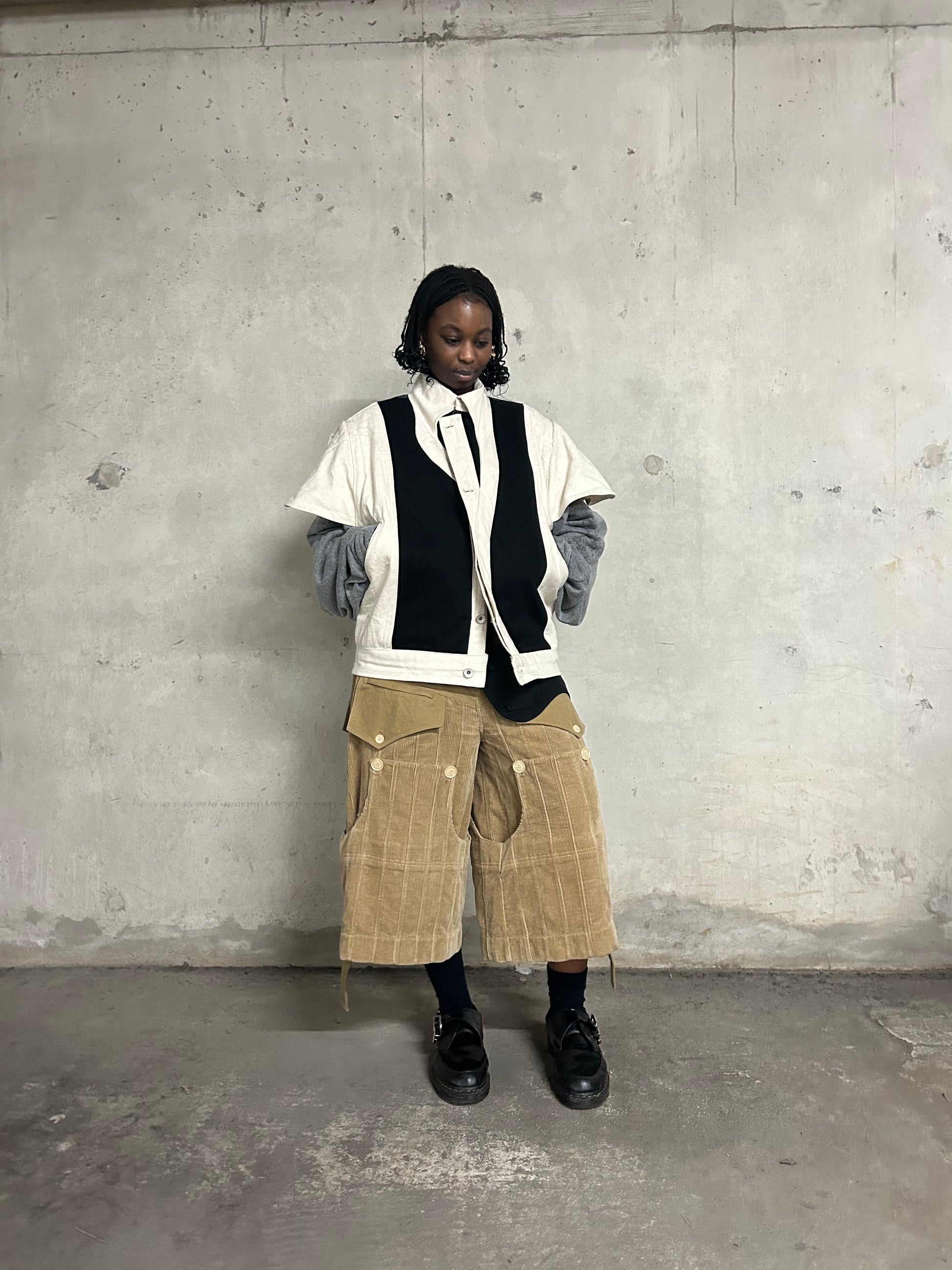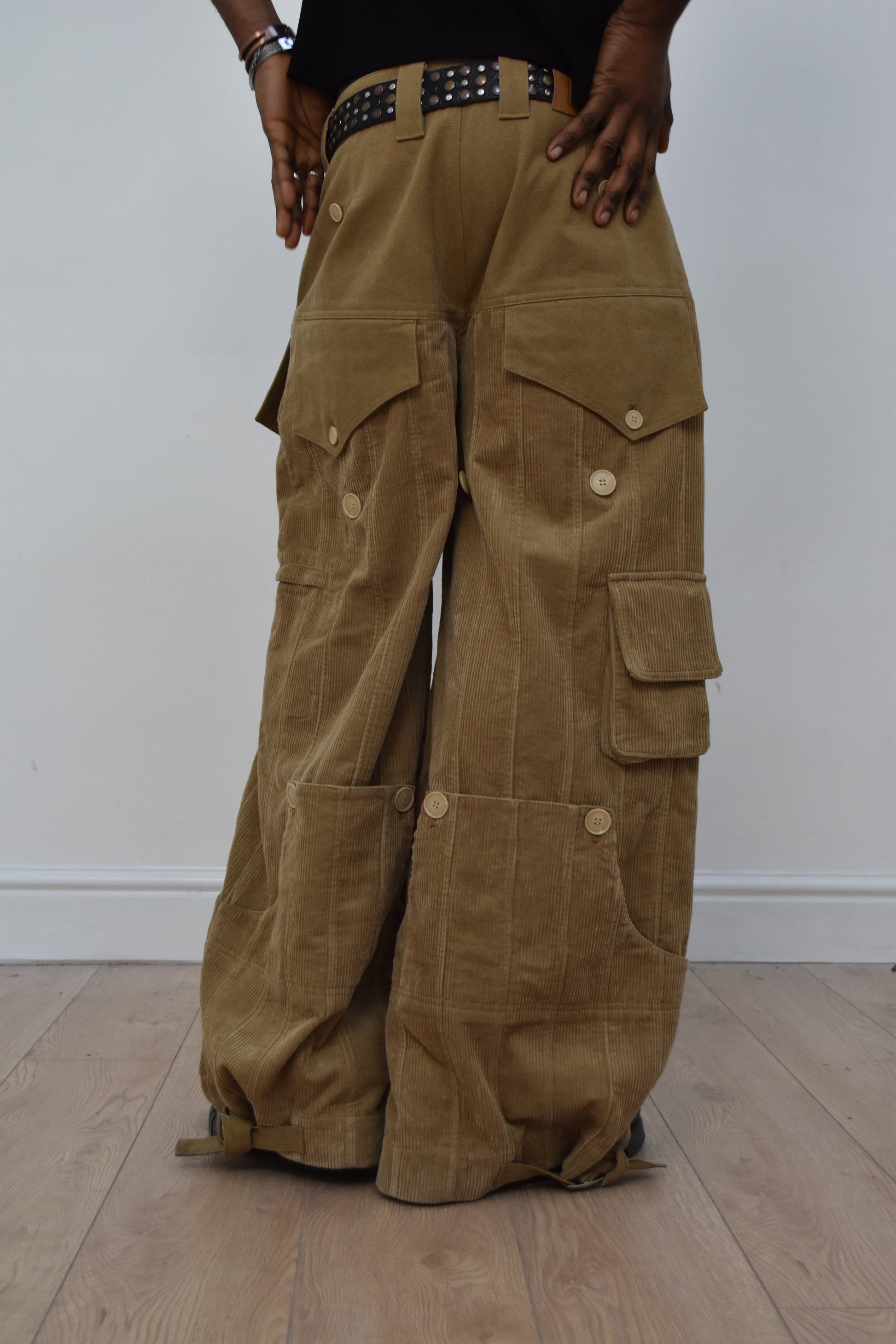 Modular pair of pants made from a 420GSM washed cotton corduroy.